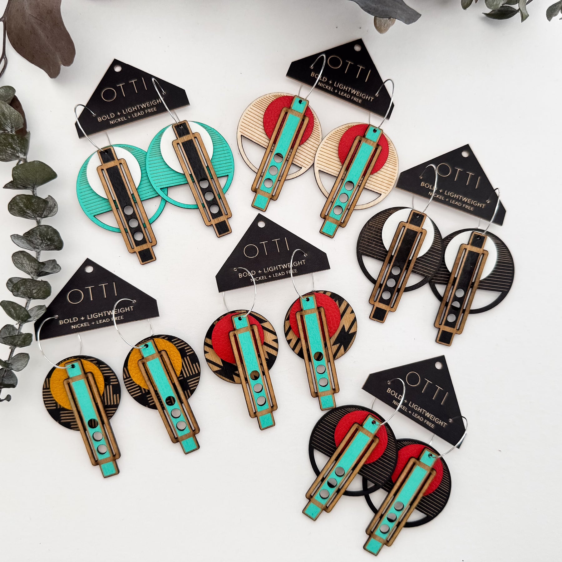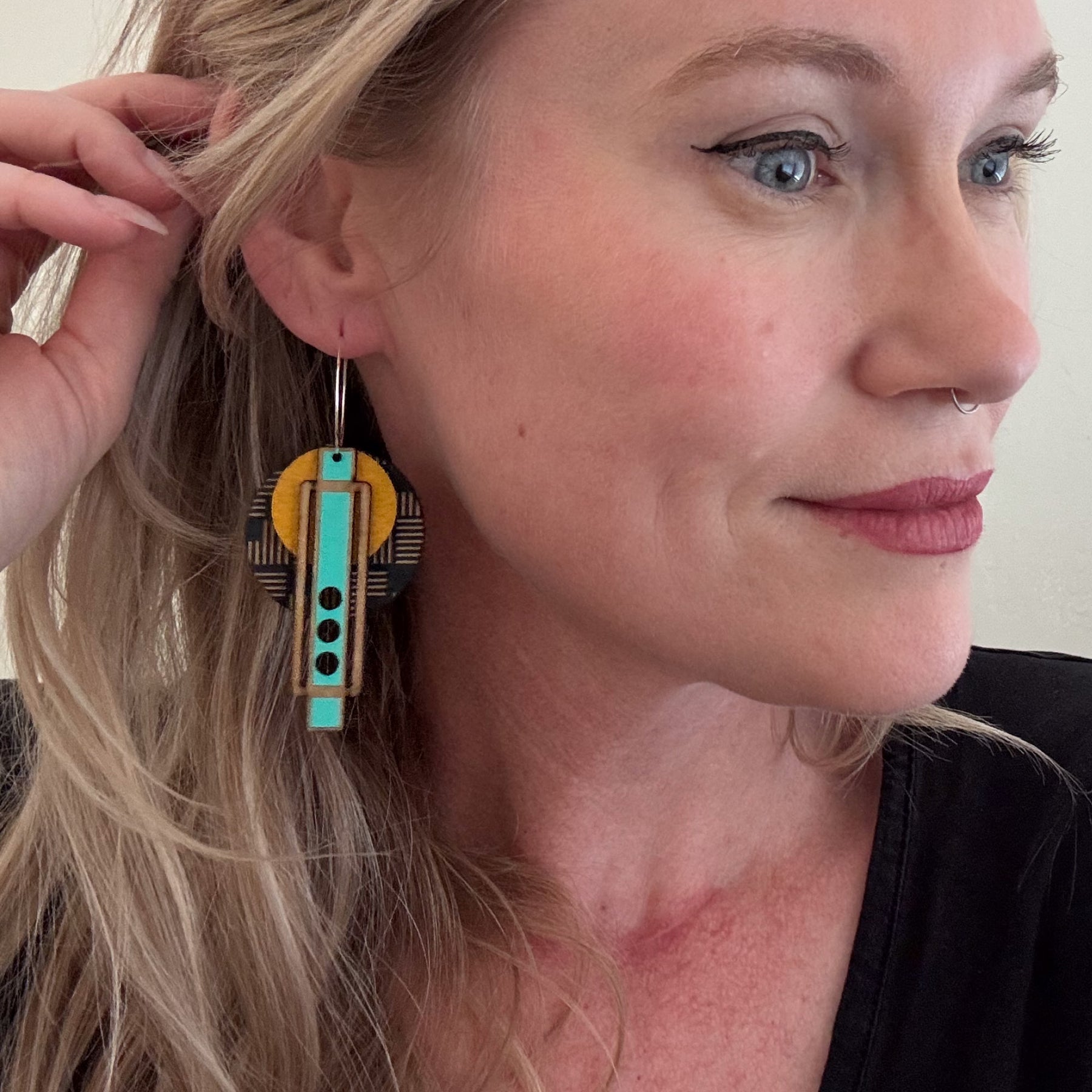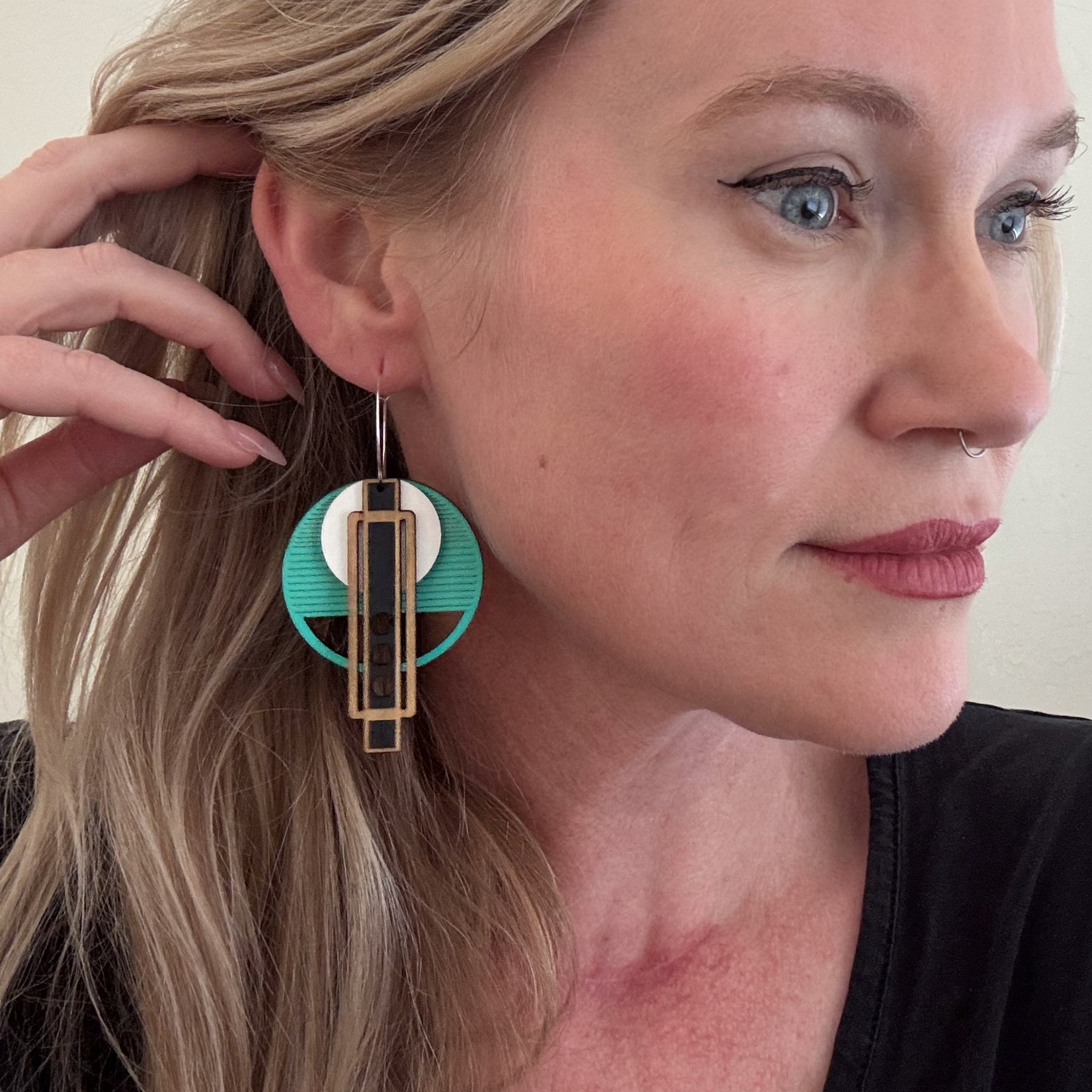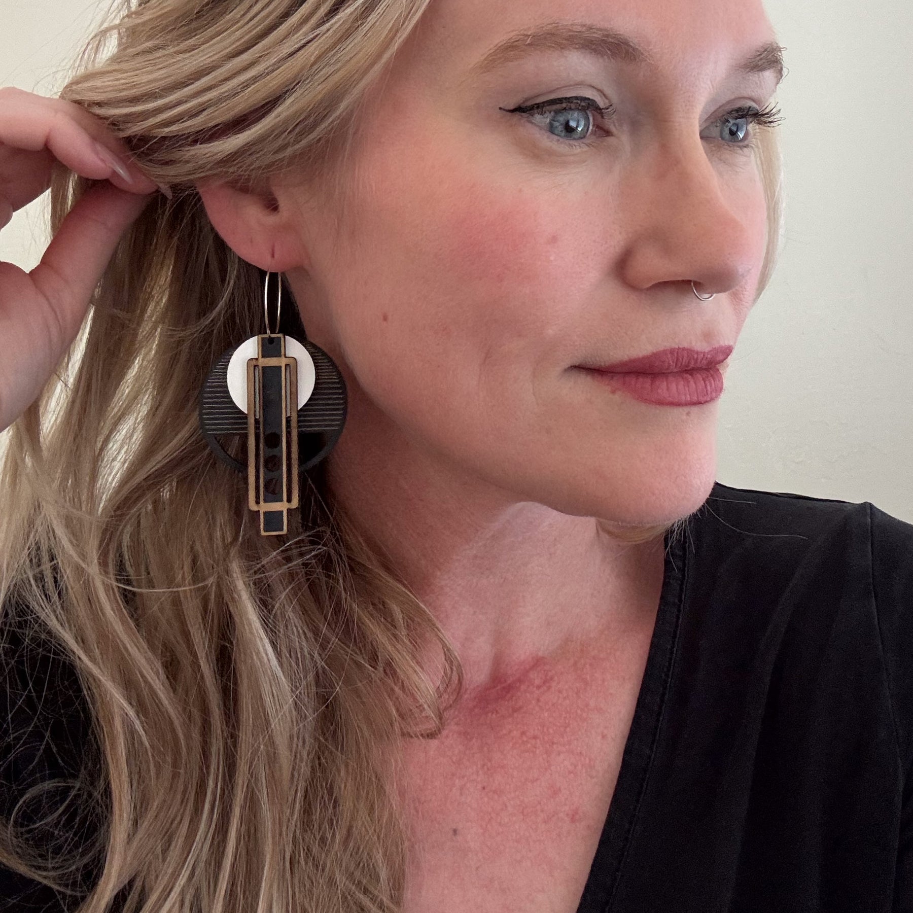 Inspired by Frank Lloyd Wright, our Lightweight Leather + Birch WRIGHT Earrings feature modular layers that can be mixed and matched for endless combinations. Despite their bold, sculptural look, they’re incredibly lightweight for all-day comfort. Perfect for anyone seeking a versatile, statement-making accessory.