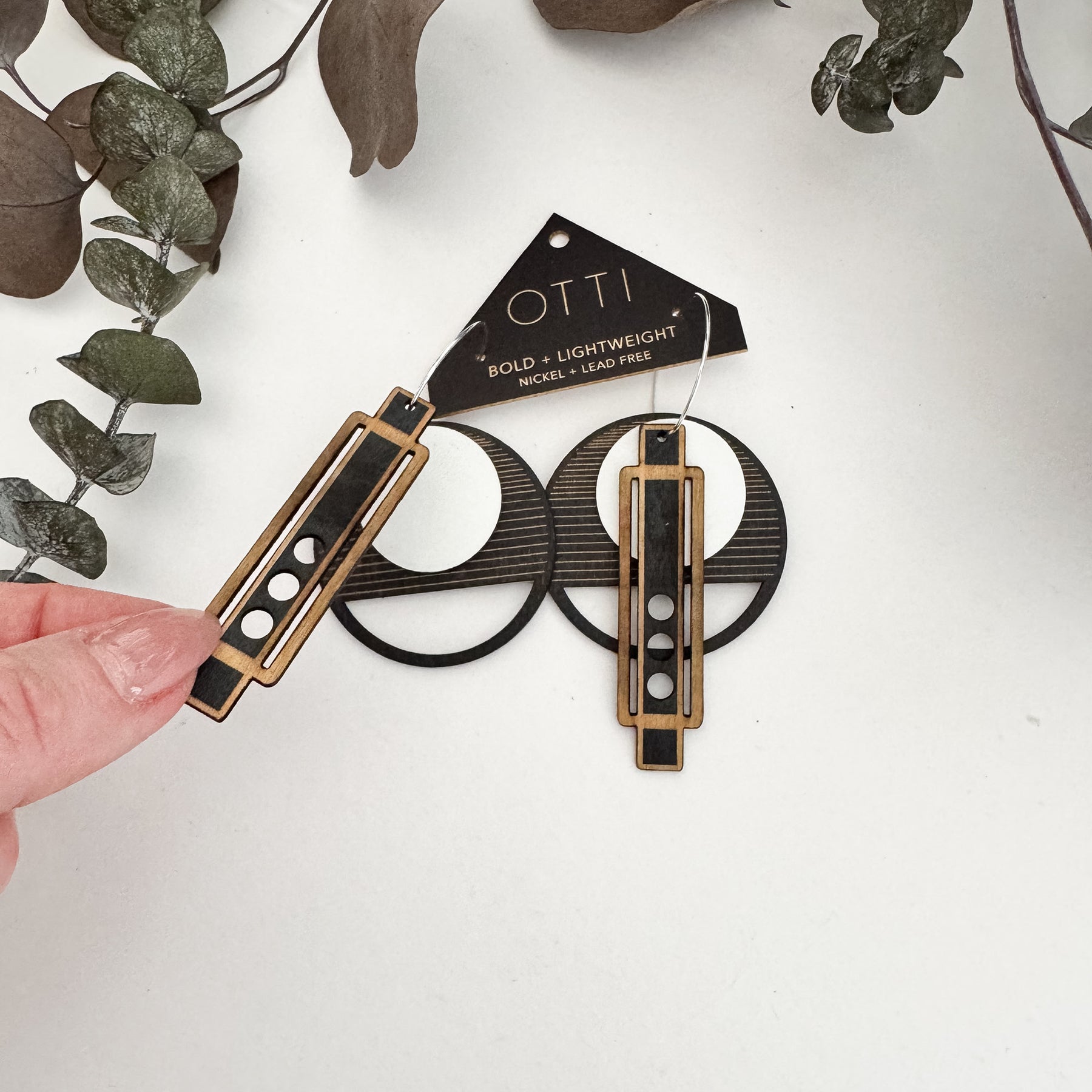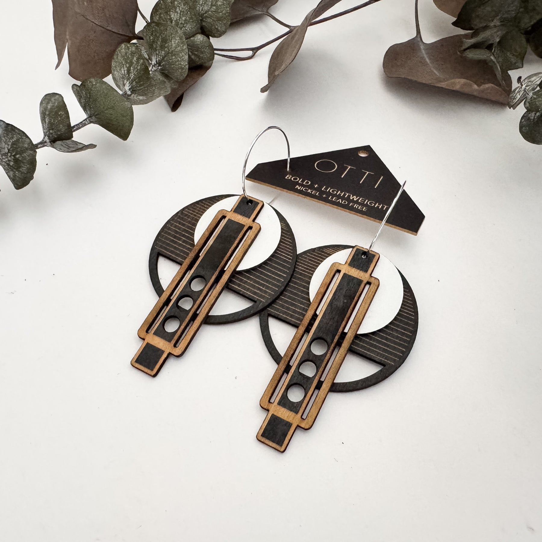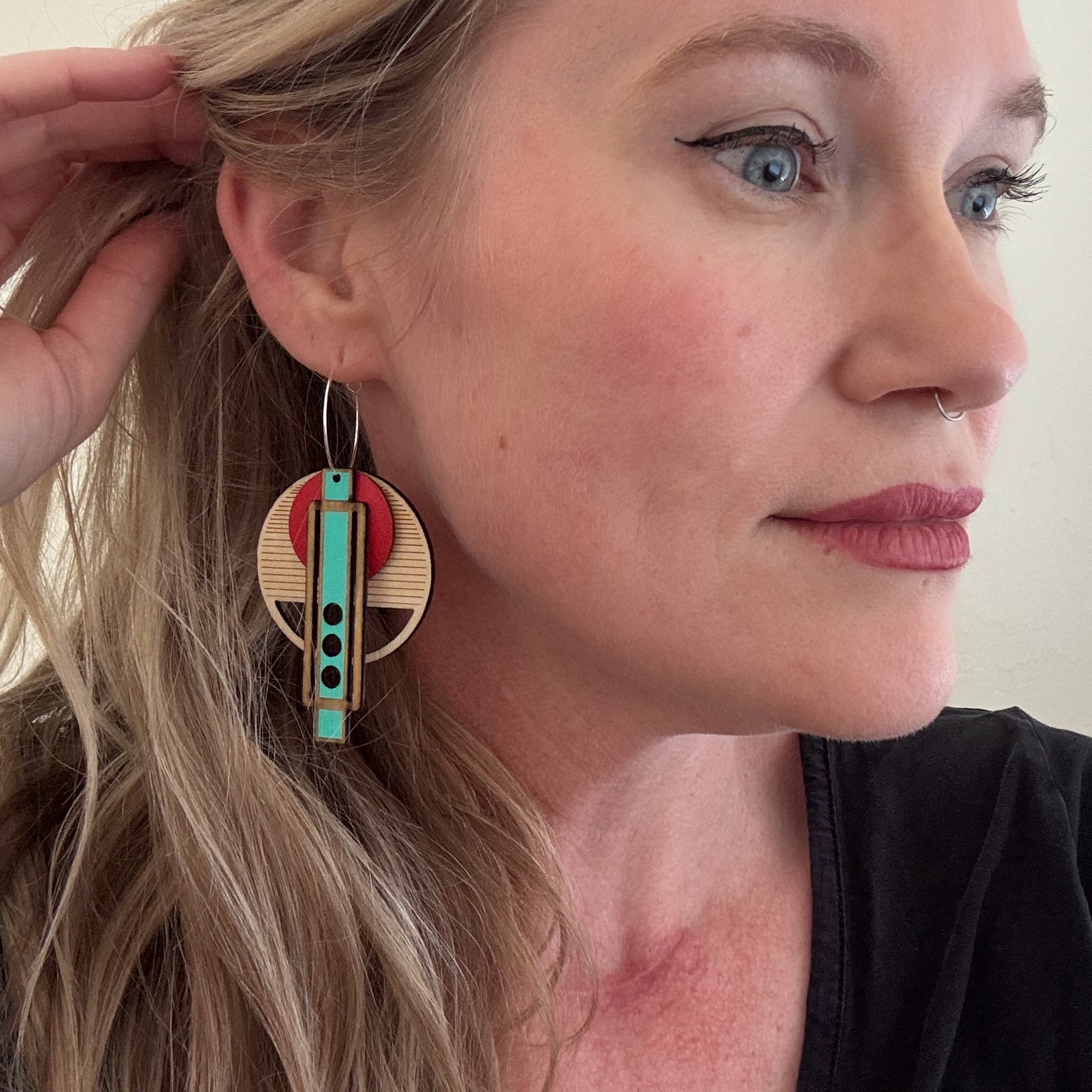 Architectural Lightweight Leather + Birch earring: WRIGHT