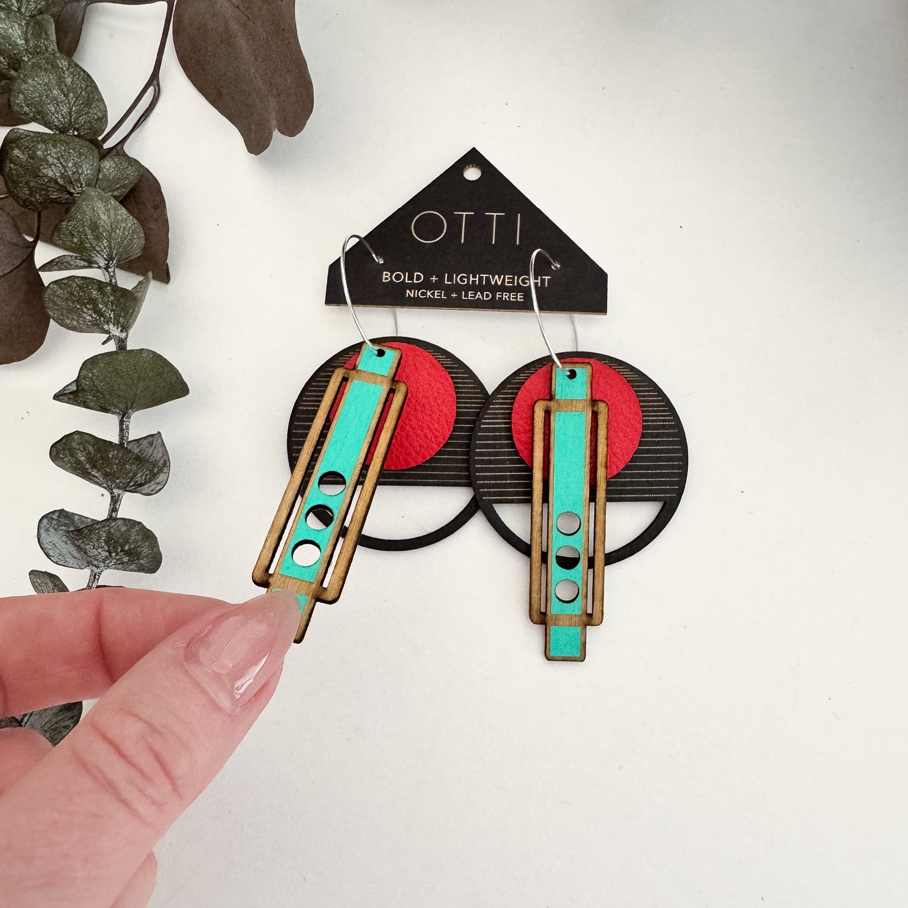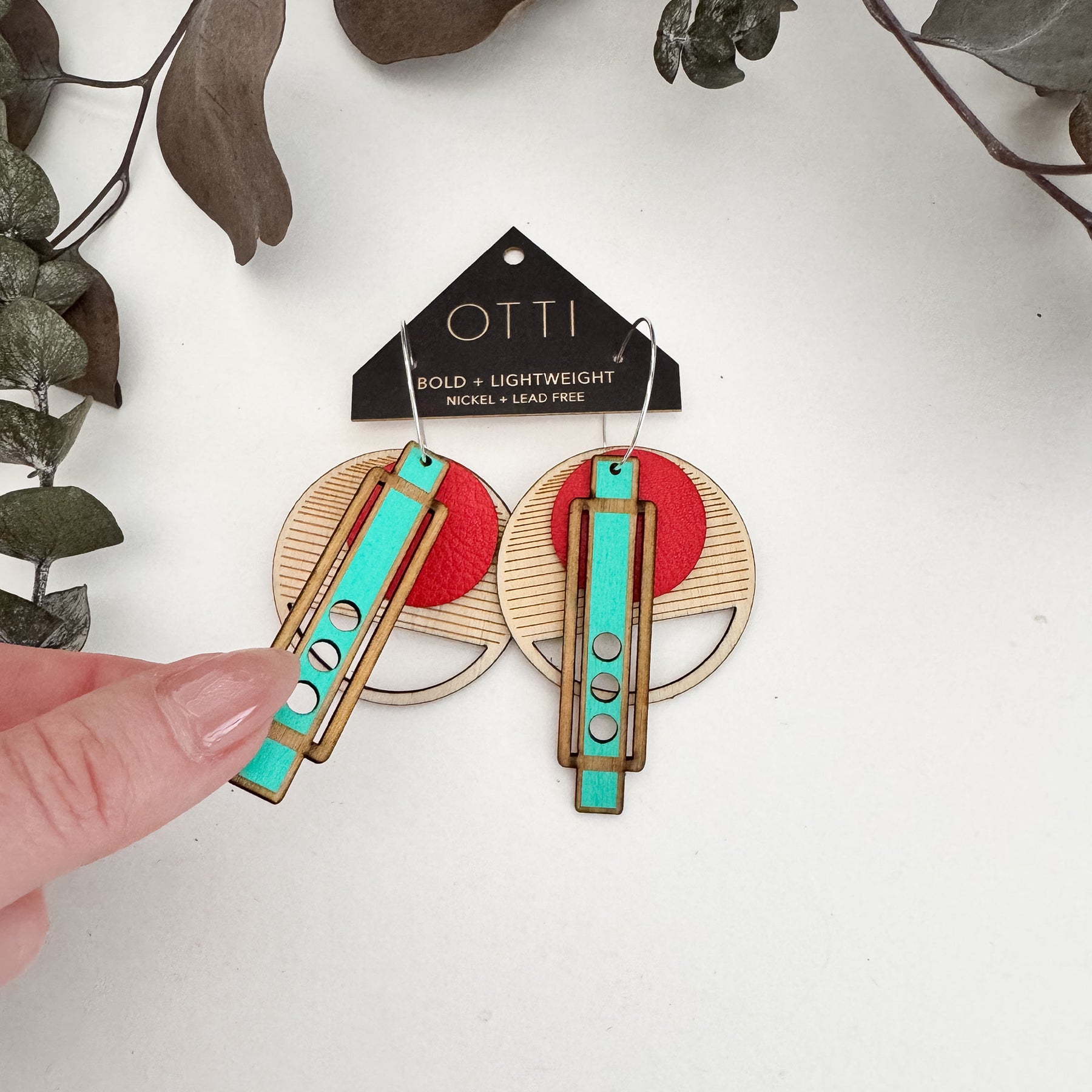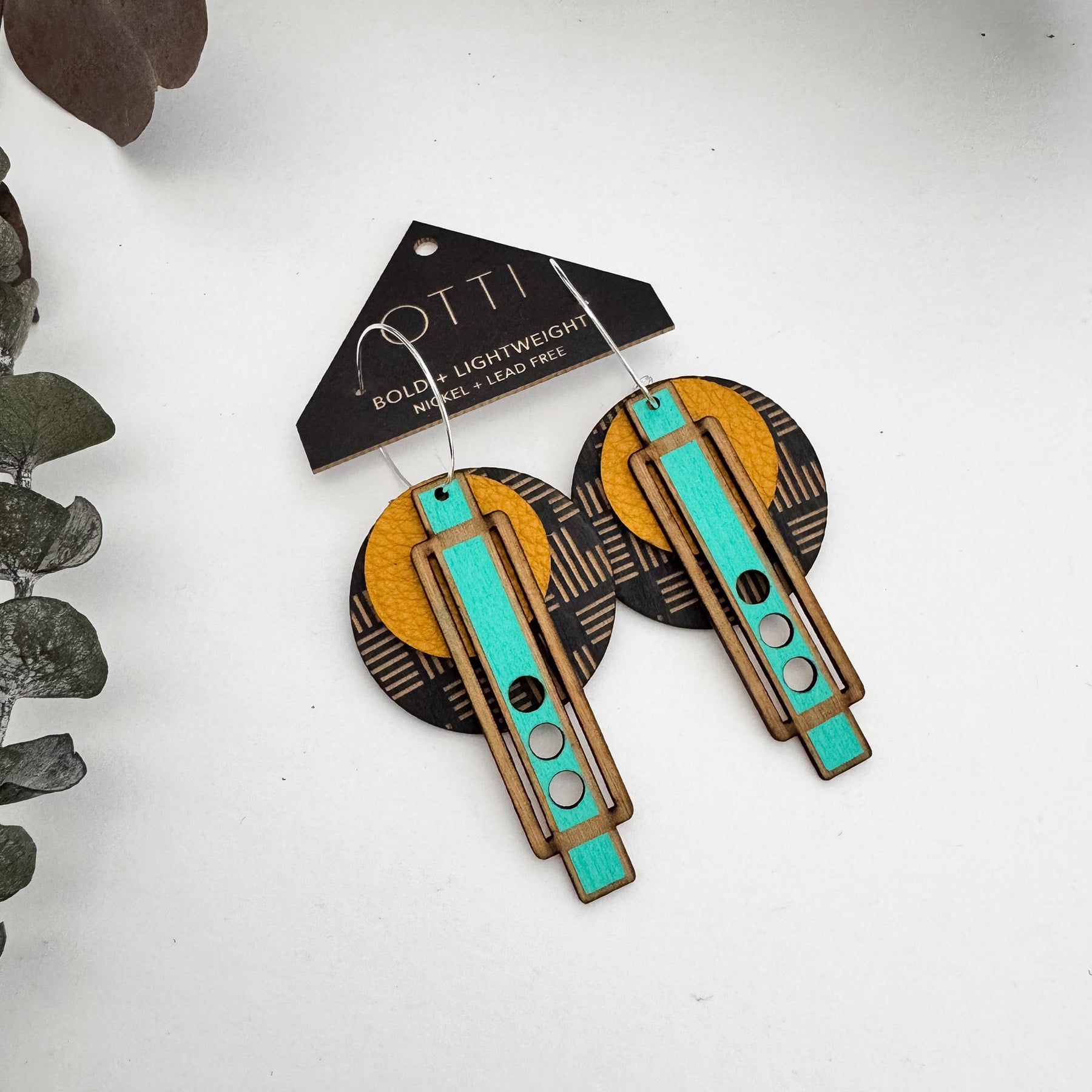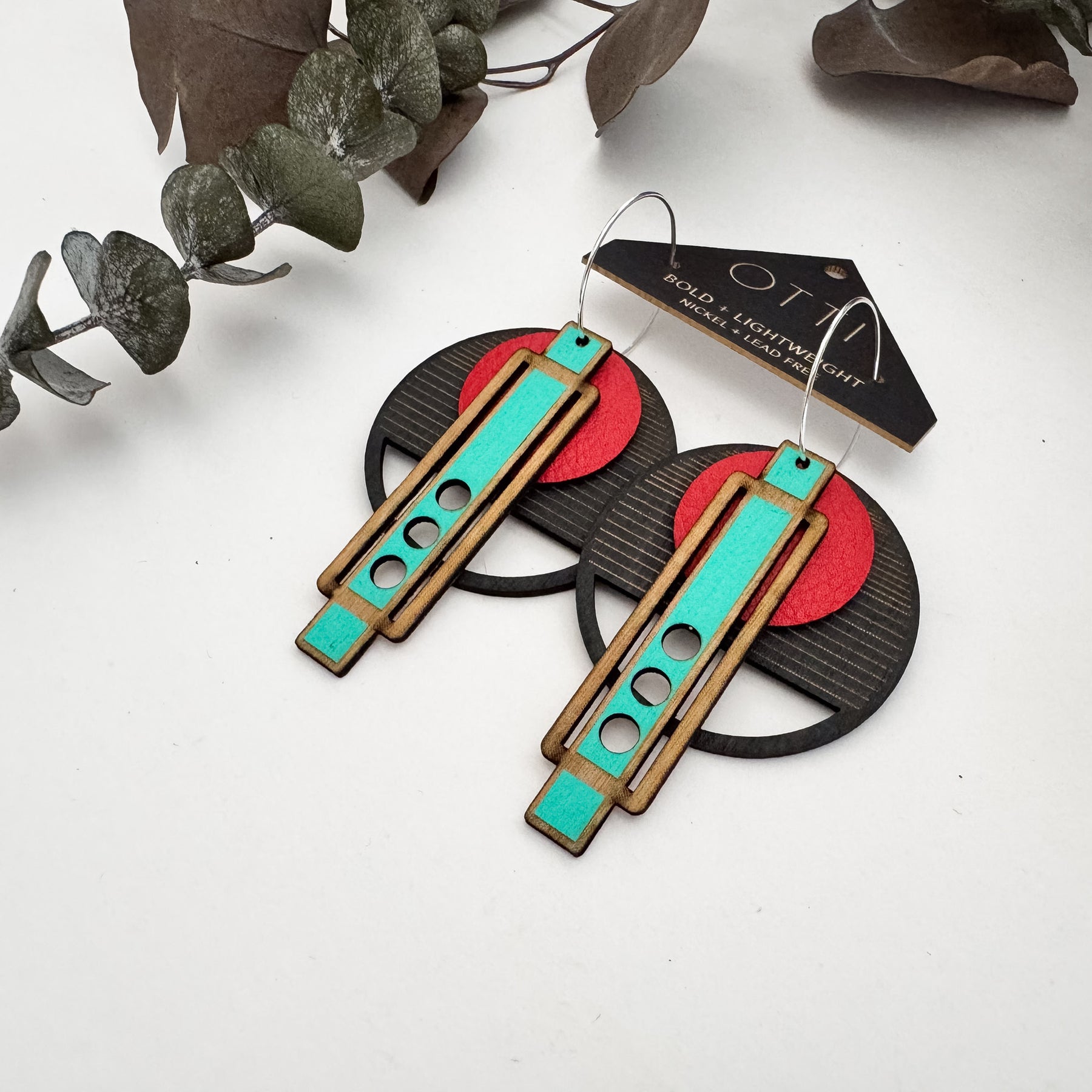 Architectural Lightweight Leather + Birch earring: WRIGHT