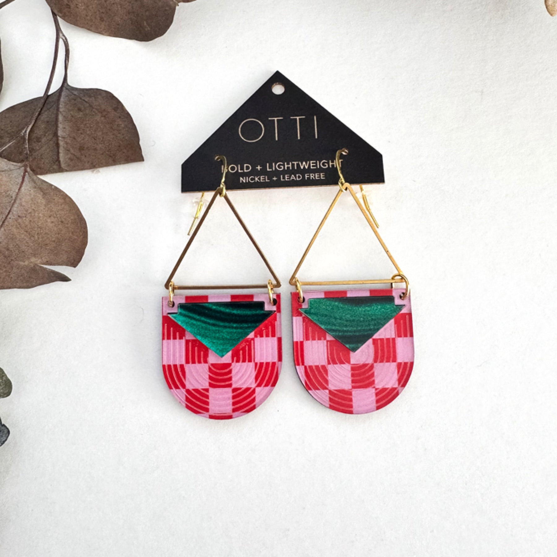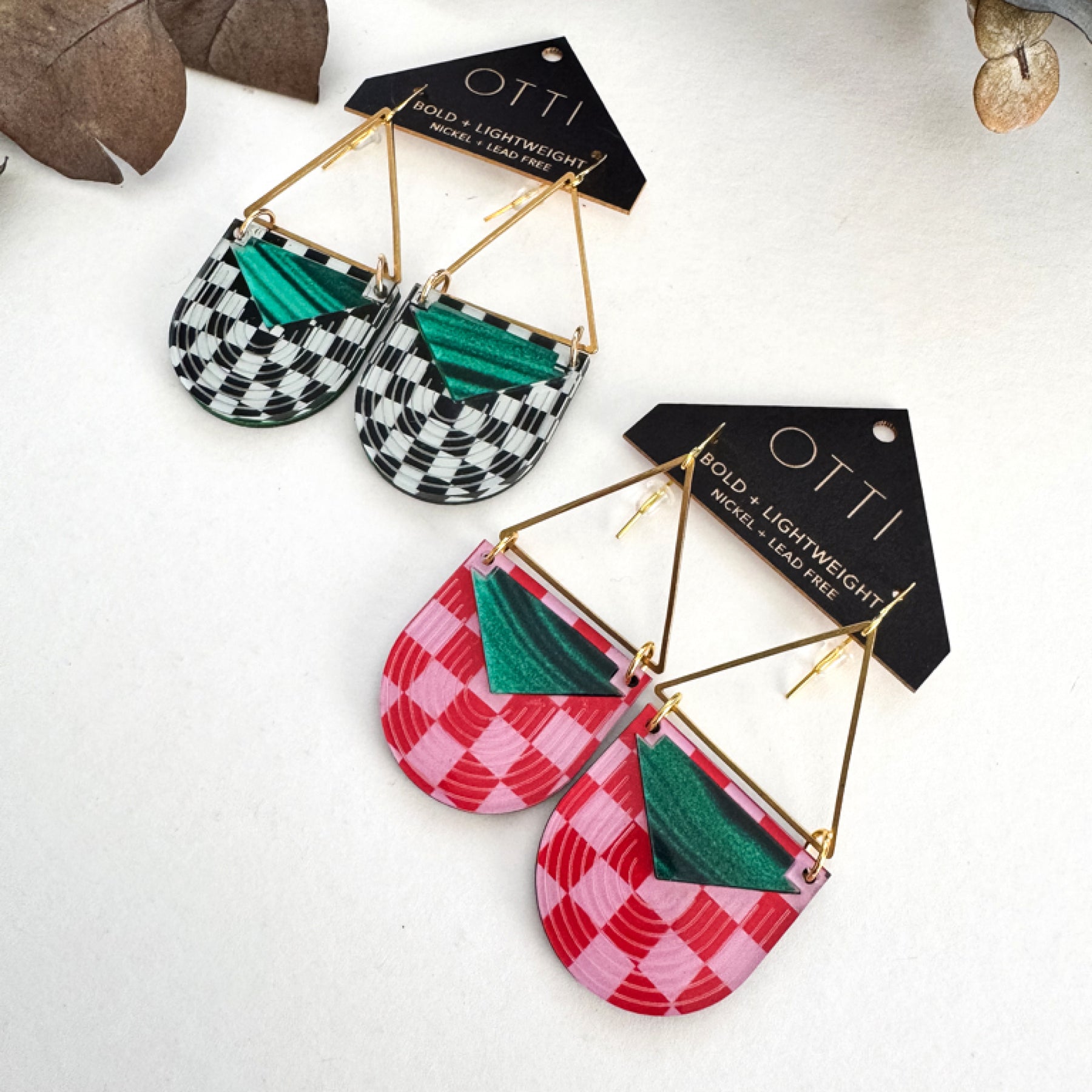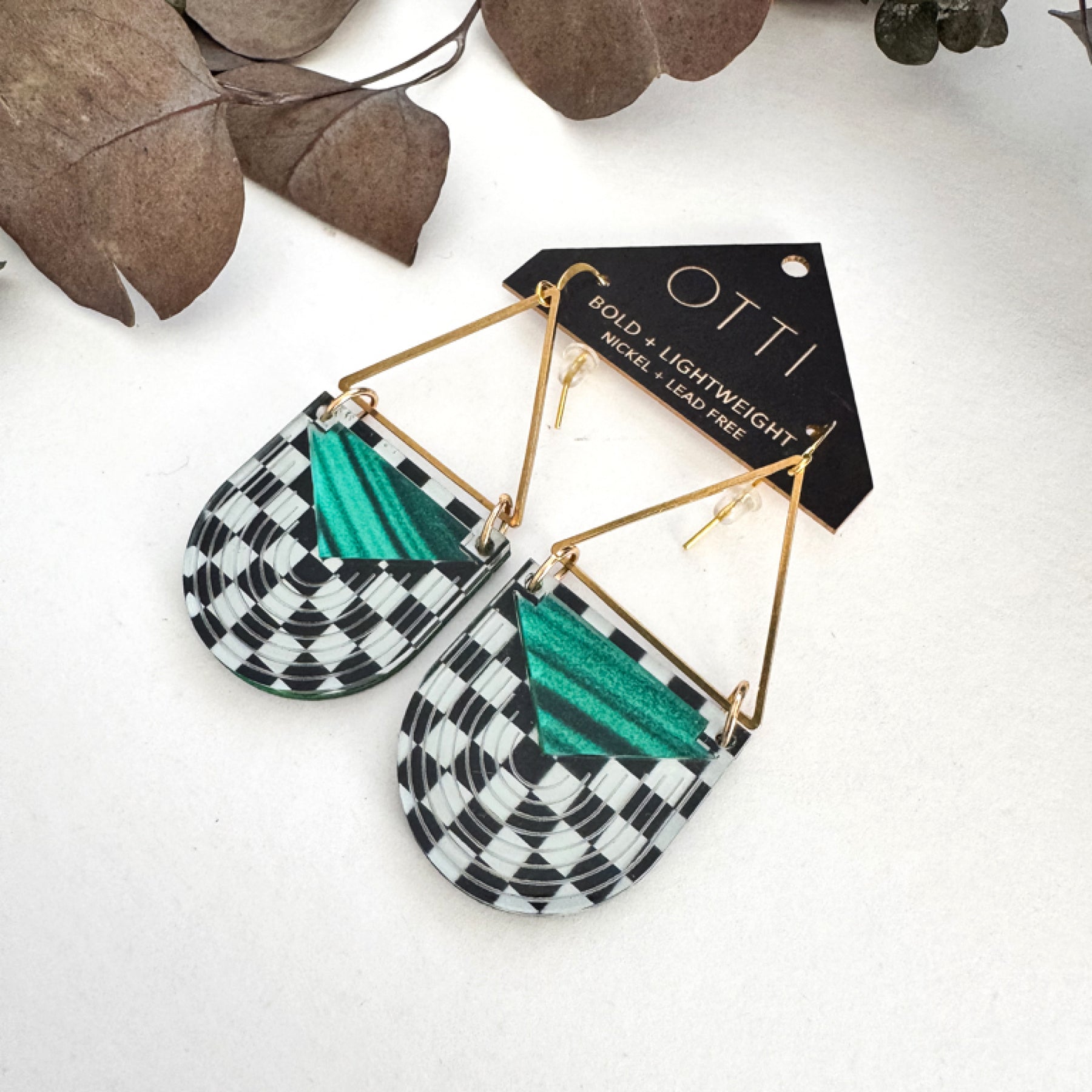 GO BOLDLY Architectural Inlay Earrings: CHECKERBOARD + MALACHITE Pairings